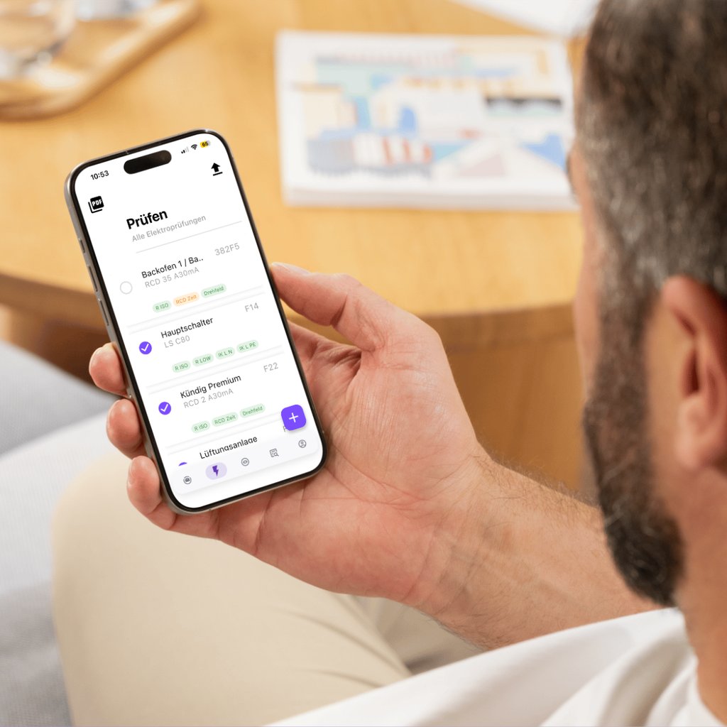 Erstellen Sie Sicherheitsnachweise, Erstprüfprotokolle, Mess und Prüfprotokoll und weiteres in Minuten – mobil, fehlerfrei und direkt versandbereit.